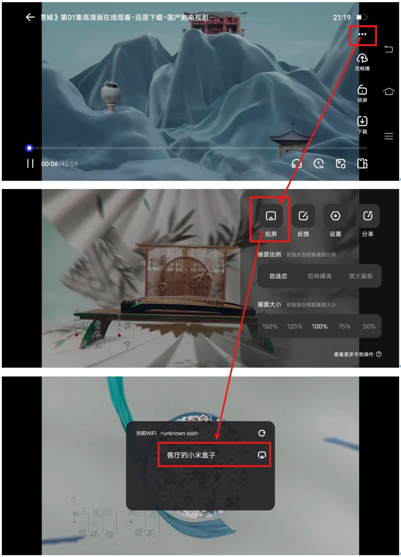 打开夸克浏览器->打开aojieの影视破站->播放视频->选择·····右上角 … ->投屏->等待搜寻出智能电视/电视盒子->选中,即可投屏。